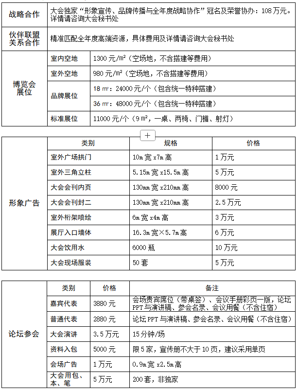 為進(jìn)一步協(xié)助參會(huì)單位拓展合作、多維度推介參會(huì)單位的品牌、形象、產(chǎn)品、技術(shù)及服務(wù)等,擴(kuò)大參會(huì)單位在行業(yè)的品牌傳播與形象提升,彰顯參會(huì)單位的行業(yè)領(lǐng)先地位,大會(huì)秘書處特推出稀缺戰(zhàn)略合作(榮譽(yù)主辦、榮譽(yù)協(xié)辦)機(jī)會(huì),按照級(jí)別分為108萬(wàn)、88萬(wàn)、58萬(wàn)、38萬(wàn)等。