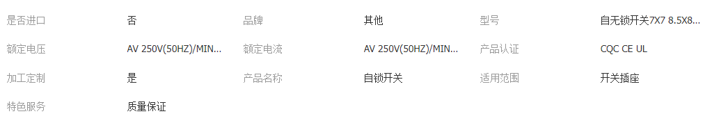 自鎖開關(guān)7 7 8 8 5.8 5.8 自鎖開關(guān) 微動(dòng)開關(guān) 按鍵開關(guān) 詳細(xì)信息 ![]() 開票另加稅點(diǎn) 詳情請聯(lián)系客服 注:需要詳細(xì)尺寸及產(chǎn)品規(guī)格書的可與客服聯(lián)系。