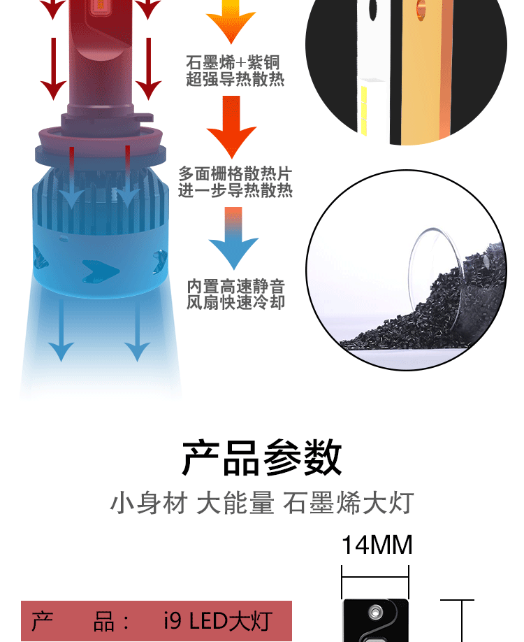 石墨烯高功率LED汽車燈H1H3H4H7H8H9900590069012H1390049007 詳細(xì)信息 品牌