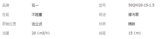 耐高溫潛水排污泵無堵塞水泵50QWR20-15-1.5質(zhì)保一年