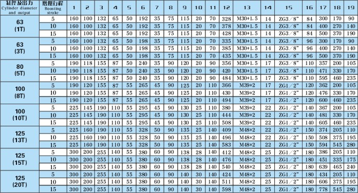 2、上表中的缸徑及出力表表中的出力值系指工作氣壓為6kg/cm2時的出力噸位值。
