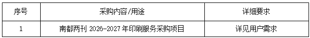 2.項目名稱:南都兩刊2026-2027年印刷服務采購項目。
