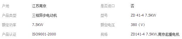 ZD141-4 7.5KW 天津式 南京起重電機(jī) 錐形轉(zhuǎn)子三相異步電動(dòng)機(jī)