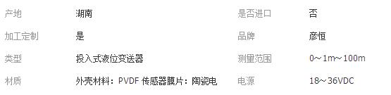 您所在的位置:全球零部件網(wǎng)>產(chǎn)品供應(yīng)>電子行業(yè)>傳感器>其他傳感器>彥恒儀器 防腐蝕投入式液位變送器YH803高精度、高穩(wěn)定性、高可靠