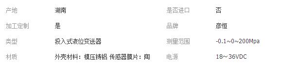 您所在的位置:全球零部件網(wǎng)>產(chǎn)品供應(yīng)>電子行業(yè)>傳感器>其他傳感器>彥恒儀器 投入式液位變送器YH802高精度、高穩(wěn)定性、高可靠性