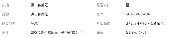 GCT標準系列泵吸式固定安裝GCT-TVOC-P34氣體檢測儀技術參數: