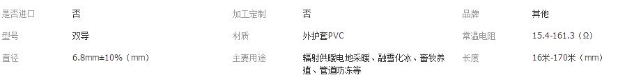 >產(chǎn)品供應(yīng)>電子行業(yè)>傳感器>流量傳感器>雙導(dǎo)發(fā)熱電纜家用地暖線電地暖地?zé)岵膳艿婪纼鎏鞙先谘┌l(fā)熱線纜 節(jié)能熱控設(shè)備研發(fā);五金建材、電線電纜、電伴熱、電熱設(shè)備、產(chǎn)品、配件及輔材、保溫材料、防水材料批發(fā)兼零售;電伴熱工程、…