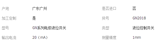 電極式液位開關(guān)主要技術(shù)指標(biāo)