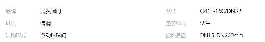 您所在的位置:全球零部件網(wǎng)>產(chǎn)品供應(yīng)>家電行業(yè)>閥門(mén)>球閥>江蘇晨弘閥門(mén)國(guó)標(biāo)鑄鋼法蘭球閥Q41F-16C/DN32