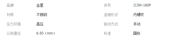 金星牌J13W-160P不銹鋼內(nèi)螺紋針型閥單向直通式針型閥手動(dòng)針型閥