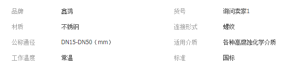本網(wǎng)頁所展示的有關(guān)【廠家供應(yīng)三片式平臺球閥DN15-DN50 不銹鋼螺紋球閥 氣動(dòng)球閥_球閥_浙江鑫鴻閥門管件有限公司】的信息/圖片/參數(shù)等由全球零部件網(wǎng)的會員【浙江鑫鴻閥門管件有限公司】提供,由全球零部件網(wǎng)會員【浙江鑫鴻閥門管件有限公司】自行對信息/圖片/參數(shù)等的真實(shí)性、準(zhǔn)確性和合法性負(fù)責(zé),本平臺(本網(wǎng)站)僅提供展示服務(wù),請謹(jǐn)慎交易,因交易而產(chǎn)生的法律關(guān)系及法律糾紛由您自行協(xié)商解決,本平臺(本網(wǎng)站)對此不承擔(dān)任何責(zé)任。您在本網(wǎng)頁可以瀏覽【廠家供應(yīng)三片式平臺球閥DN15-DN50 不銹鋼螺紋球閥 氣動(dòng)球閥_球閥_浙江鑫鴻閥門管件有限公司】有關(guān)的信息/圖片/價(jià)格等及提供【廠家供應(yīng)三片式平臺球閥DN15-DN50 不銹鋼螺紋球閥 氣動(dòng)球閥_球閥_浙江鑫鴻閥門管件有限公司】的商家公司簡介、聯(lián)系方式等信息。