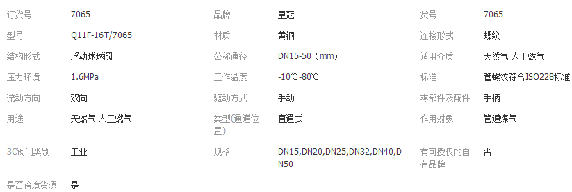 您所在的位置:全球零部件網(wǎng)>產(chǎn)品供應(yīng)>家電行業(yè)>閥門(mén)>球閥>皇冠黃銅燃?xì)馇蜷y 7065煤氣閥燃?xì)忾y門(mén)高壓球閥