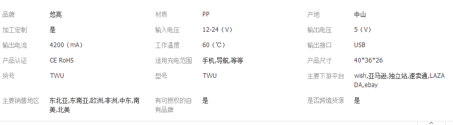 立即發(fā)布求購意向本網(wǎng)頁所展示的有關(guān)【供應(yīng)4.2A雙USB車載充電器車載點(diǎn)煙器插座雙孔一拖二車載手機(jī)充電_ HVAC汽車_中山市悠悠電子科技有限公司 】的信息/圖片/參數(shù)等由全球零部件網(wǎng)的會(huì)員【中山市悠悠電子科技有限公司 】提供,由全球零部件網(wǎng)會(huì)員【中山市悠悠電子科技有限公司 】自行對(duì)信息/圖片/參數(shù)等的真實(shí)性、準(zhǔn)確性和合法性負(fù)責(zé),本平臺(tái)(本網(wǎng)站)僅提供展示服務(wù),請(qǐng)謹(jǐn)慎交易,因交易而產(chǎn)生的法律關(guān)系及法律糾紛由您自行協(xié)商解決,本平臺(tái)(本網(wǎng)站)對(duì)此不承擔(dān)任何責(zé)任。您在本網(wǎng)頁可以瀏覽【供應(yīng)4.2A雙USB車載充電器車載點(diǎn)煙器插座雙孔一拖二車載手機(jī)充電_ HVAC汽車_中山市悠悠電子科技有限公司 】有關(guān)的信息/圖片/價(jià)格等及提供【供應(yīng)4.2A雙USB車載充電器車載點(diǎn)煙器插座雙孔一拖二車載手機(jī)充電_ HVAC汽車_中山市悠悠電子科技有限公司 】的商家公司簡介、聯(lián)系方式等信息。