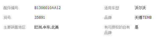 立即發(fā)布求購意向本網(wǎng)頁所展示的有關(guān)【重卡汽車節(jié)溫器 大柴沃爾沃恒溫器7421705453 B1306010-A12_ HVAC汽車_曲阜天博國際貿(mào)易有限公司】的信息/圖片/參數(shù)等由全球零部件網(wǎng)的會(huì)員【曲阜天博國際貿(mào)易有限公司】提供,由全球零部件網(wǎng)會(huì)員【曲阜天博國際貿(mào)易有限公司】自行對信息/圖片/參數(shù)等的真實(shí)性、準(zhǔn)確性和合法性負(fù)責(zé),本平臺(tái)(本網(wǎng)站)僅提供展示服務(wù),請謹(jǐn)慎交易,因交易而產(chǎn)生的法律關(guān)系及法律糾紛由您自行協(xié)商解決,本平臺(tái)(本網(wǎng)站)對此不承擔(dān)任何責(zé)任。您在本網(wǎng)頁可以瀏覽【重卡汽車節(jié)溫器 大柴沃爾沃恒溫器7421705453 B1306010-A12_ HVAC汽車_曲阜天博國際貿(mào)易有限公司】有關(guān)的信息/圖片/價(jià)格等及提供【重卡汽車節(jié)溫器 大柴沃爾沃恒溫器7421705453 B1306010-A12_ HVAC汽車_曲阜天博國際貿(mào)易有限公司】的商家公司簡介、聯(lián)系方式等信息。