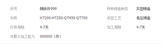 立即發(fā)布求購意向本網(wǎng)頁所展示的有關(guān)【灰鐵精密鑄造鑄鐵件精密鑄造灰鐵件毛坯定做失蠟鑄造件熔模鑄造件_原材料_禹州市富禹機械配件有限公司】的信息/圖片/參數(shù)等由全球零部件網(wǎng)的會員【禹州市富禹機械配件有限公司】提供,由全球零部件網(wǎng)會員【禹州市富禹機械配件有限公司】自行對信息/圖片/參數(shù)等的真實性、準確性和合法性負責,本平臺(本網(wǎng)站)僅提供展示服務,請謹慎交易,因交易而產(chǎn)生的法律關(guān)系及法律糾紛由您自行協(xié)商解決,本平臺(本網(wǎng)站)對此不承擔任何責任。您在本網(wǎng)頁可以瀏覽【灰鐵精密鑄造鑄鐵件精密鑄造灰鐵件毛坯定做失蠟鑄造件熔模鑄造件_原材料_禹州市富禹機械配件有限公司】有關(guān)的信息/圖片/價格等及提供【灰鐵精密鑄造鑄鐵件精密鑄造灰鐵件毛坯定做失蠟鑄造件熔模鑄造件_原材料_禹州市富禹機械配件有限公司】的商家公司簡介、聯(lián)系方式等信息。