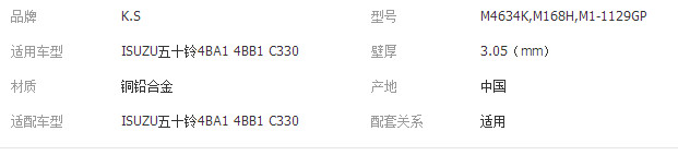 >產(chǎn)品供應(yīng)>綜合配件>密封件系列>三一(曲軸)齒輪>汽車 發(fā)動(dòng)機(jī)零件 曲軸瓦 連桿瓦 五十鈴4BA1 4BB1 M168H M4634K 汽車配件、摩托車配件制造、進(jìn)出口銷售(依法須經(jīng)批準(zhǔn)的項(xiàng)目,經(jīng)相關(guān)部門批準(zhǔn)后方可開展經(jīng)營活動(dòng))。