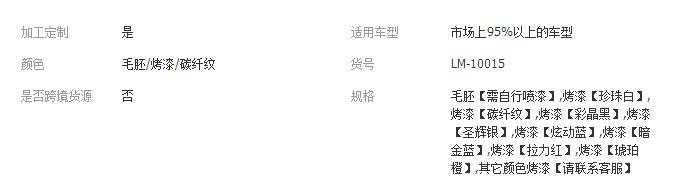 立即發(fā)布求購意向本網(wǎng)頁所展示的有關(guān)【適用于十代思域改裝尾翼 GT尾翼定風(fēng)翼外裝飾 三廂車通用運(yùn)動(dòng)尾翼_原材料_廣州雷麥汽車用品有限公司】的信息/圖片/參數(shù)等由全球零部件網(wǎng)的會(huì)員【廣州雷麥汽車用品有限公司】提供,由全球零部件網(wǎng)會(huì)員【廣州雷麥汽車用品有限公司】自行對信息/圖片/參數(shù)等的真實(shí)性、準(zhǔn)確性和合法性負(fù)責(zé),本平臺(tái)(本網(wǎng)站)僅提供展示服務(wù),請謹(jǐn)慎交易,因交易而產(chǎn)生的法律關(guān)系及法律糾紛由您自行協(xié)商解決,本平臺(tái)(本網(wǎng)站)對此不承擔(dān)任何責(zé)任。您在本網(wǎng)頁可以瀏覽【適用于十代思域改裝尾翼 GT尾翼定風(fēng)翼外裝飾 三廂車通用運(yùn)動(dòng)尾翼_原材料_廣州雷麥汽車用品有限公司】有關(guān)的信息/圖片/價(jià)格等及提供【適用于十代思域改裝尾翼 GT尾翼定風(fēng)翼外裝飾 三廂車通用運(yùn)動(dòng)尾翼_原材料_廣州雷麥汽車用品有限公司】的商家公司簡介、聯(lián)系方式等信息。