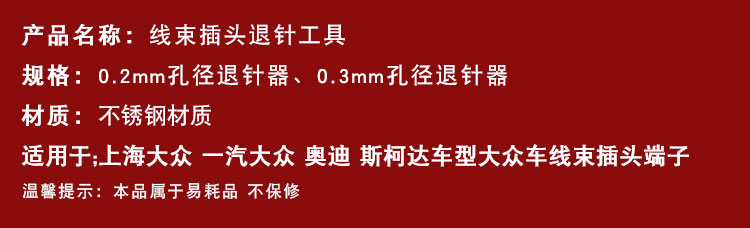 立即發(fā)布求購(gòu)意向本網(wǎng)頁(yè)所展示的有關(guān)【適用大眾奧迪退針器汽車線束插頭端子拆裝卸工具挑針解鎖取出鑰匙_汽修工具與設(shè)備_上海如協(xié)汽車用品有限公司】的信息/圖片/參數(shù)等由全球零部件網(wǎng)的會(huì)員【上海如協(xié)汽車用品有限公司】提供,由全球零部件網(wǎng)會(huì)員【上海如協(xié)汽車用品有限公司】自行對(duì)信息/圖片/參數(shù)等的真實(shí)性、準(zhǔn)確性和合法性負(fù)責(zé),本平臺(tái)(本網(wǎng)站)僅提供展示服務(wù),請(qǐng)謹(jǐn)慎交易,因交易而產(chǎn)生的法律關(guān)系及法律糾紛由您自行協(xié)商解決,本平臺(tái)(本網(wǎng)站)對(duì)此不承擔(dān)任何責(zé)任。您在本網(wǎng)頁(yè)可以瀏覽【適用大眾奧迪退針器汽車線束插頭端子拆裝卸工具挑針解鎖取出鑰匙_汽修工具與設(shè)備_上海如協(xié)汽車用品有限公司】有關(guān)的信息/圖片/價(jià)格等及提供【適用大眾奧迪退針器汽車線束插頭端子拆裝卸工具挑針解鎖取出鑰匙_汽修工具與設(shè)備_上海如協(xié)汽車用品有限公司】的商家公司簡(jiǎn)介、聯(lián)系方式等信息。