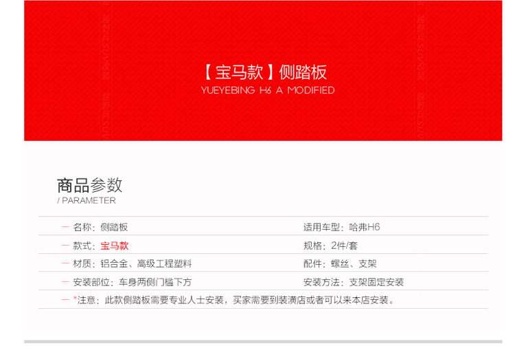 立即發(fā)布求購意向本網(wǎng)頁所展示的有關(guān)【哈佛新H6踏板新H6升級款踏板側(cè)踏板裙邊踏板運動款踏板老H6踏板6_車身件_蘇州凡康汽配有限公司】的信息/圖片/參數(shù)等由全球零部件網(wǎng)的會員【蘇州凡康汽配有限公司】提供,由全球零部件網(wǎng)會員【蘇州凡康汽配有限公司】自行對信息/圖片/參數(shù)等的真實性、準(zhǔn)確性和合法性負(fù)責(zé),本平臺(本網(wǎng)站)僅提供展示服務(wù),請謹(jǐn)慎交易,因交易而產(chǎn)生的法律關(guān)系及法律糾紛由您自行協(xié)商解決,本平臺(本網(wǎng)站)對此不承擔(dān)任何責(zé)任。您在本網(wǎng)頁可以瀏覽【哈佛新H6踏板新H6升級款踏板側(cè)踏板裙邊踏板運動款踏板老H6踏板6_車身件_蘇州凡康汽配有限公司】有關(guān)的信息/圖片/價格等及提供【哈佛新H6踏板新H6升級款踏板側(cè)踏板裙邊踏板運動款踏板老H6踏板6_車身件_蘇州凡康汽配有限公司】的商家公司簡介、聯(lián)系方式等信息。
