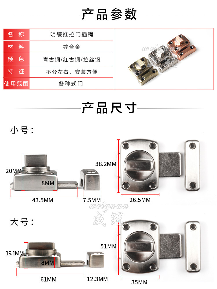 立即發(fā)布求購意向本網(wǎng)頁所展示的有關(guān)【新款門插銷門栓門閂門鎖 防盜門門扣木門插銷鎖加厚明裝_插銷_廣州市白云區(qū)同和淮海家具五金商行】的信息/圖片/參數(shù)等由全球零部件網(wǎng)的會(huì)員【廣州市白云區(qū)同和淮海家具五金商行】提供,由全球零部件網(wǎng)會(huì)員【廣州市白云區(qū)同和淮海家具五金商行】自行對(duì)信息/圖片/參數(shù)等的真實(shí)性、準(zhǔn)確性和合法性負(fù)責(zé),本平臺(tái)(本網(wǎng)站)僅提供展示服務(wù),請(qǐng)謹(jǐn)慎交易,因交易而產(chǎn)生的法律關(guān)系及法律糾紛由您自行協(xié)商解決,本平臺(tái)(本網(wǎng)站)對(duì)此不承擔(dān)任何責(zé)任。您在本網(wǎng)頁可以瀏覽【新款門插銷門栓門閂門鎖 防盜門門扣木門插銷鎖加厚明裝_插銷_廣州市白云區(qū)同和淮海家具五金商行】有關(guān)的信息/圖片/價(jià)格等及提供【新款門插銷門栓門閂門鎖 防盜門門扣木門插銷鎖加厚明裝_插銷_廣州市白云區(qū)同和淮海家具五金商行】的商家公司簡(jiǎn)介、聯(lián)系方式等信息。