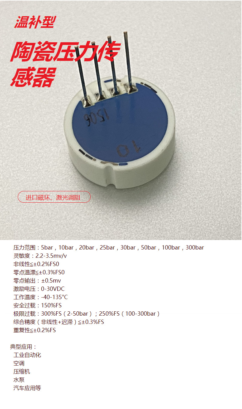 立即發(fā)布求購(gòu)意向本網(wǎng)頁(yè)所展示的有關(guān)【現(xiàn)貨供應(yīng)水壓油壓氣壓溫補(bǔ)型 陶瓷壓力傳感器10/30/50/100/300Bar_壓力/稱(chēng)重/力(敏)傳感器_無(wú)錫市風(fēng)標(biāo)科技有限公司】的信息/圖片/參數(shù)等由全球零部件網(wǎng)的會(huì)員【無(wú)錫市風(fēng)標(biāo)科技有限公司】提供,由全球零部件網(wǎng)會(huì)員【無(wú)錫市風(fēng)標(biāo)科技有限公司】自行對(duì)信息/圖片/參數(shù)等的真實(shí)性、準(zhǔn)確性和合法性負(fù)責(zé),本平臺(tái)(本網(wǎng)站)僅提供展示服務(wù),請(qǐng)謹(jǐn)慎交易,因交易而產(chǎn)生的法律關(guān)系及法律糾紛由您自行協(xié)商解決,本平臺(tái)(本網(wǎng)站)對(duì)此不承擔(dān)任何責(zé)任。您在本網(wǎng)頁(yè)可以瀏覽【現(xiàn)貨供應(yīng)水壓油壓氣壓溫補(bǔ)型 陶瓷壓力傳感器10/30/50/100/300Bar_壓力/稱(chēng)重/力(敏)傳感器_無(wú)錫市風(fēng)標(biāo)科技有限公司】有關(guān)的信息/圖片/價(jià)格等及提供【現(xiàn)貨供應(yīng)水壓油壓氣壓溫補(bǔ)型 陶瓷壓力傳感器10/30/50/100/300Bar_壓力/稱(chēng)重/力(敏)傳感器_無(wú)錫市風(fēng)標(biāo)科技有限公司】的商家公司簡(jiǎn)介、聯(lián)系方式等信息。