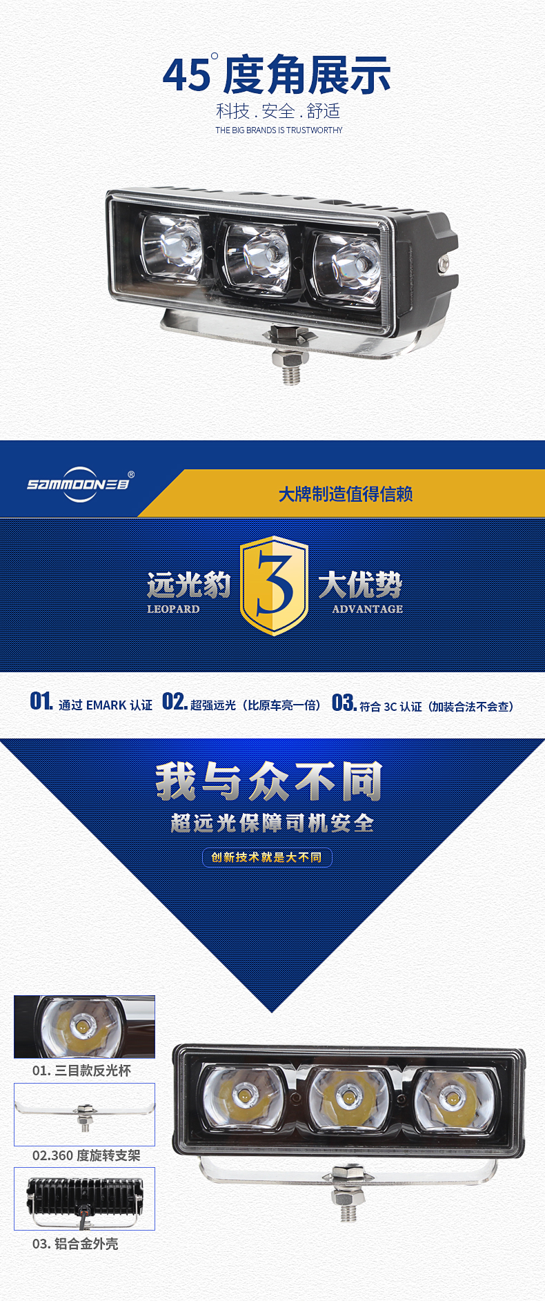>產(chǎn)品供應(yīng)> HVAC汽車>車身件>汽車燈具>三目超遠(yuǎn)聚光工作燈 貨車射燈 越野車燈 農(nóng)業(yè)機(jī)械射燈 遠(yuǎn)光豹射燈 LED工作燈 LED駕駛燈 LED長條燈 LED/HID遙控?zé)?LED大燈 LED車前燈 LED日行燈 LED燈泡 LED尾燈 LED信號(hào)燈