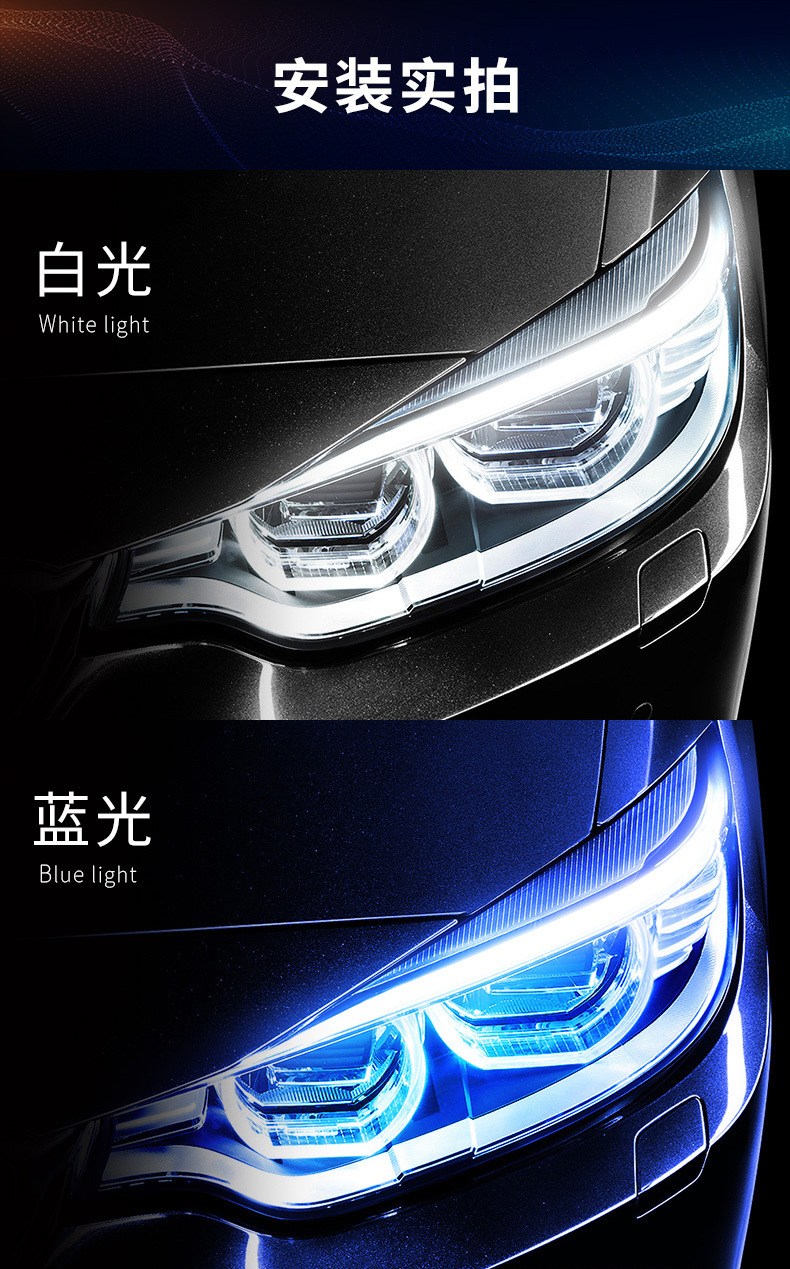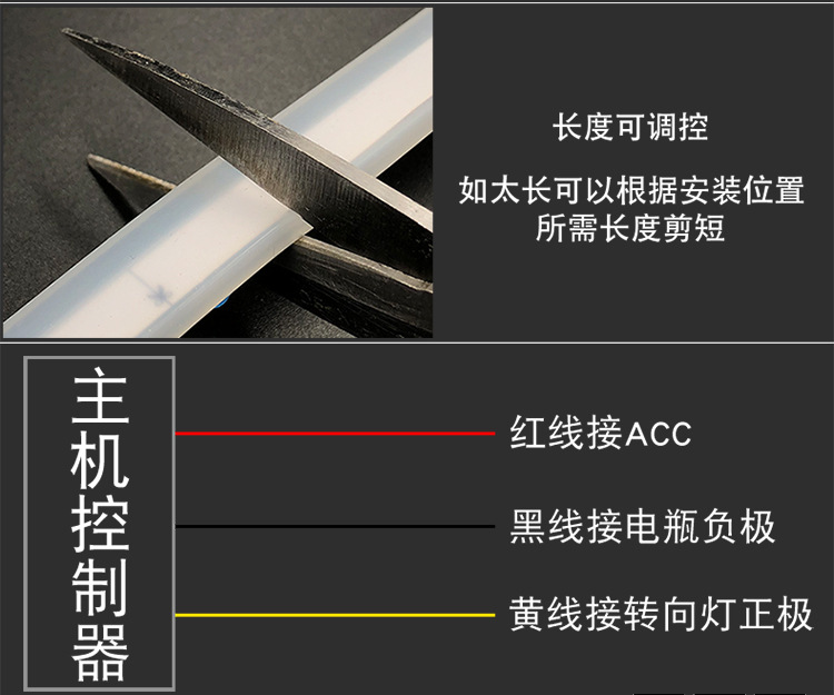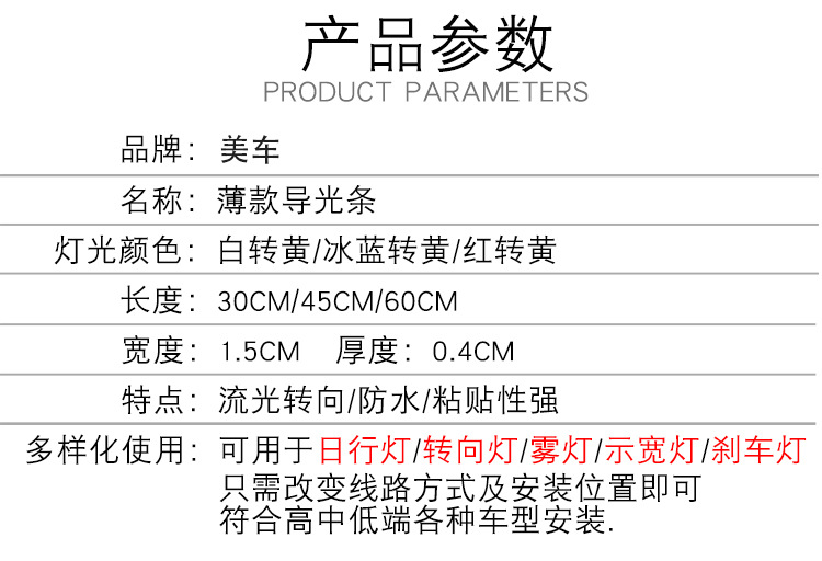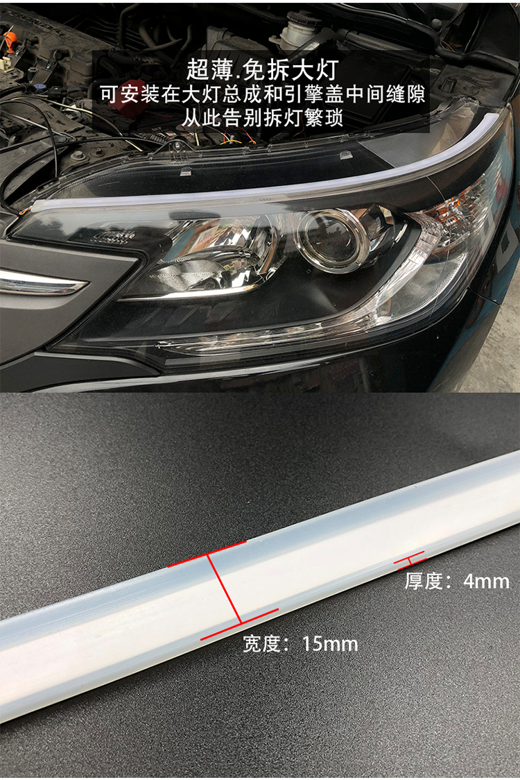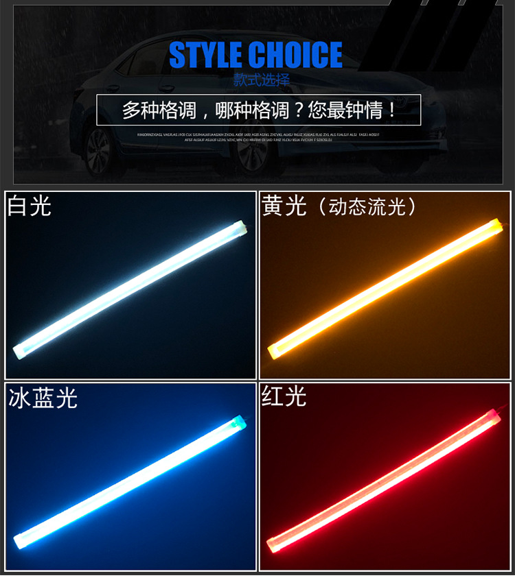 【產(chǎn)品名稱】:超薄日行燈 雙色導光條 白黃轉(zhuǎn)向燈 硅膠燈條