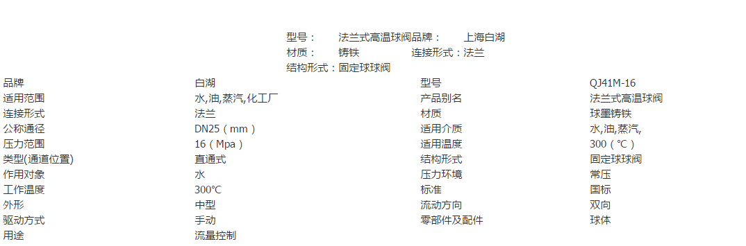 法蘭鑄鐵高溫球閥Q41S-1.6(Q)替代球閥 |