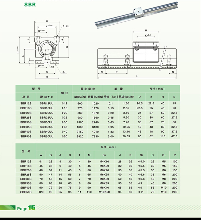 SBR導(dǎo)軌型號:SBR-C10/SBR-C12/SBR-C13/SBR-C16/SBR-C20/SBR-C25/SBR-C30/SBR-C35/SBR-C40/SBR-C50