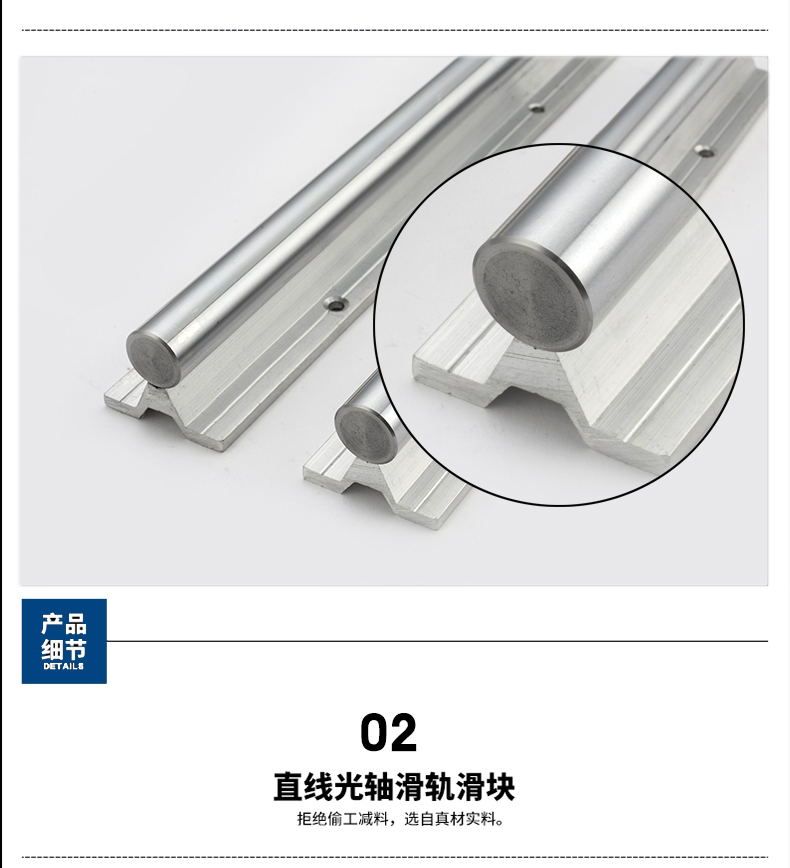 導(dǎo)軌材質(zhì):光軸45#高碳鋼、表面鍍鉻、淬火硬軸 鋁托導(dǎo)軌