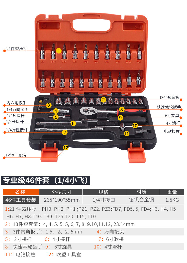 產(chǎn)品名稱:精裝套筒46件套