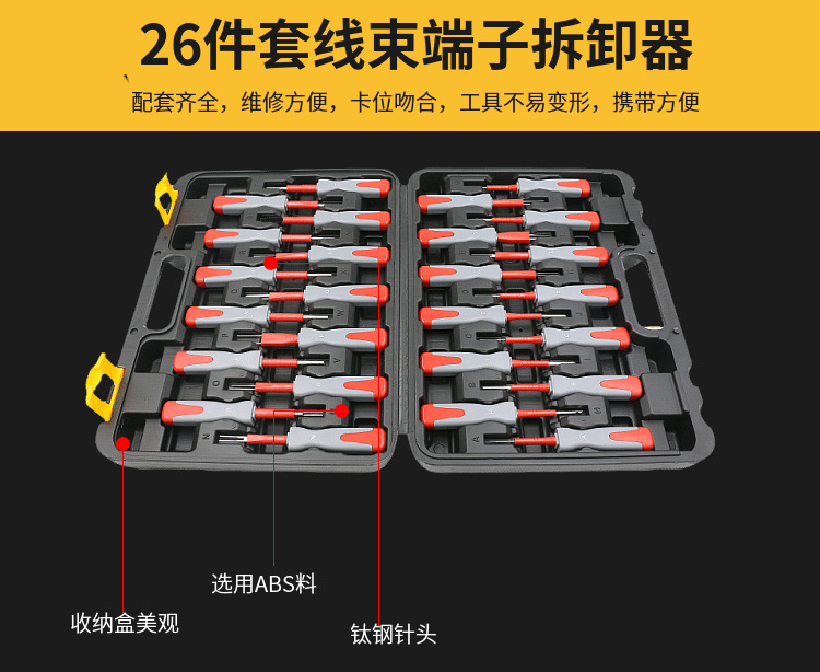 立即發(fā)布求購意向本網(wǎng)頁所展示的有關【26件汽車端子拆卸退針器工具鈦鋼線束端子五金工具廠家現(xiàn)貨批發(fā)_檢測設備_東莞喜團圓實業(yè)有限公司】的信息/圖片/參數(shù)等由全球零部件網(wǎng)的會員【東莞喜團圓實業(yè)有限公司】提供,由全球零部件網(wǎng)會員【東莞喜團圓實業(yè)有限公司】自行對信息/圖片/參數(shù)等的真實性、準確性和合法性負責,本平臺(本網(wǎng)站)僅提供展示服務,請謹慎交易,因交易而產(chǎn)生的法律關系及法律糾紛由您自行協(xié)商解決,本平臺(本網(wǎng)站)對此不承擔任何責任。您在本網(wǎng)頁可以瀏覽【26件汽車端子拆卸退針器工具鈦鋼線束端子五金工具廠家現(xiàn)貨批發(fā)_檢測設備_東莞喜團圓實業(yè)有限公司】有關的信息/圖片/價格等及提供【26件汽車端子拆卸退針器工具鈦鋼線束端子五金工具廠家現(xiàn)貨批發(fā)_檢測設備_東莞喜團圓實業(yè)有限公司】的商家公司簡介、聯(lián)系方式等信息。