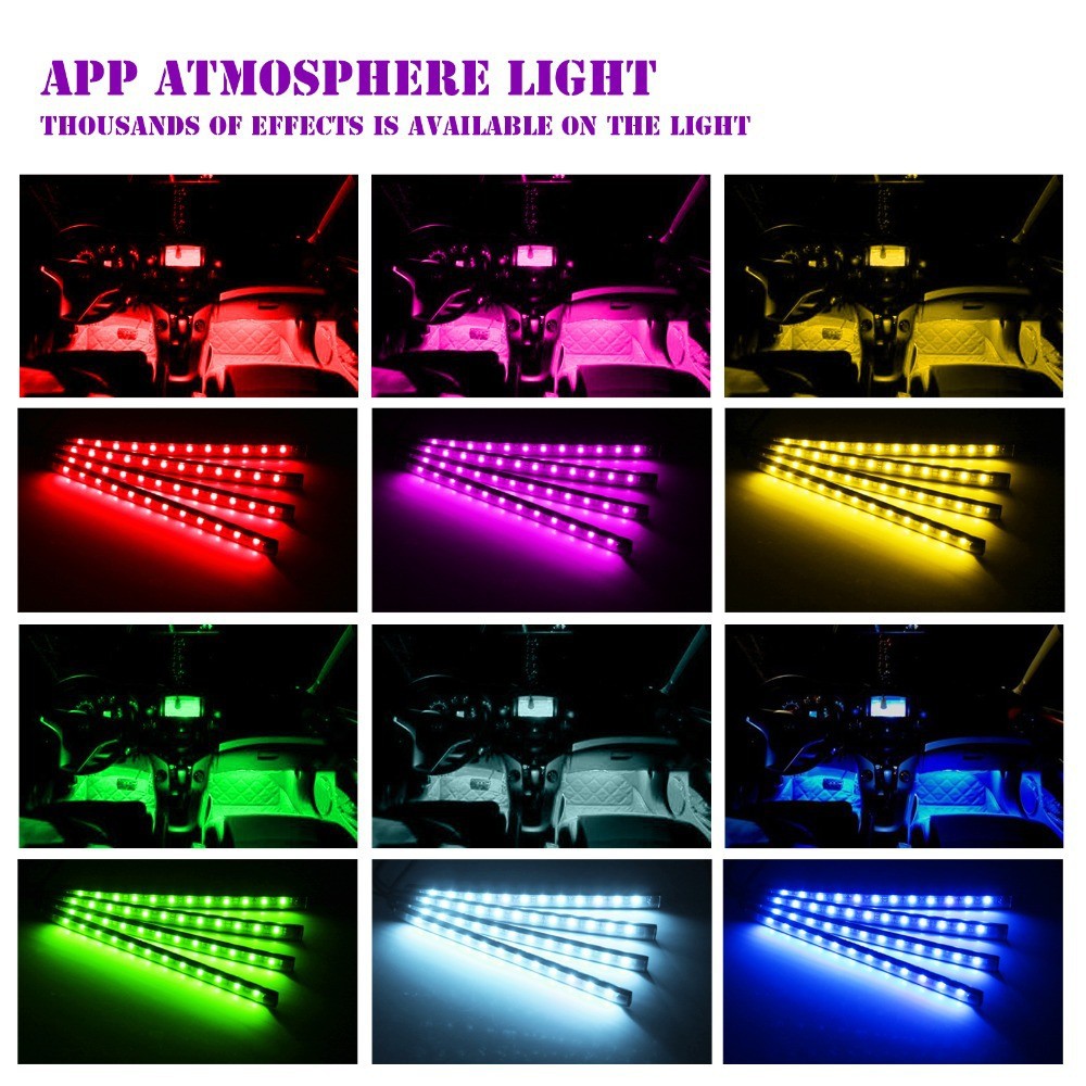 產(chǎn)品名稱:手機APP藍牙控制氛圍燈帶開關(guān)5050 12led一拖四氛圍燈腳底燈車內(nèi)氣氛燈
