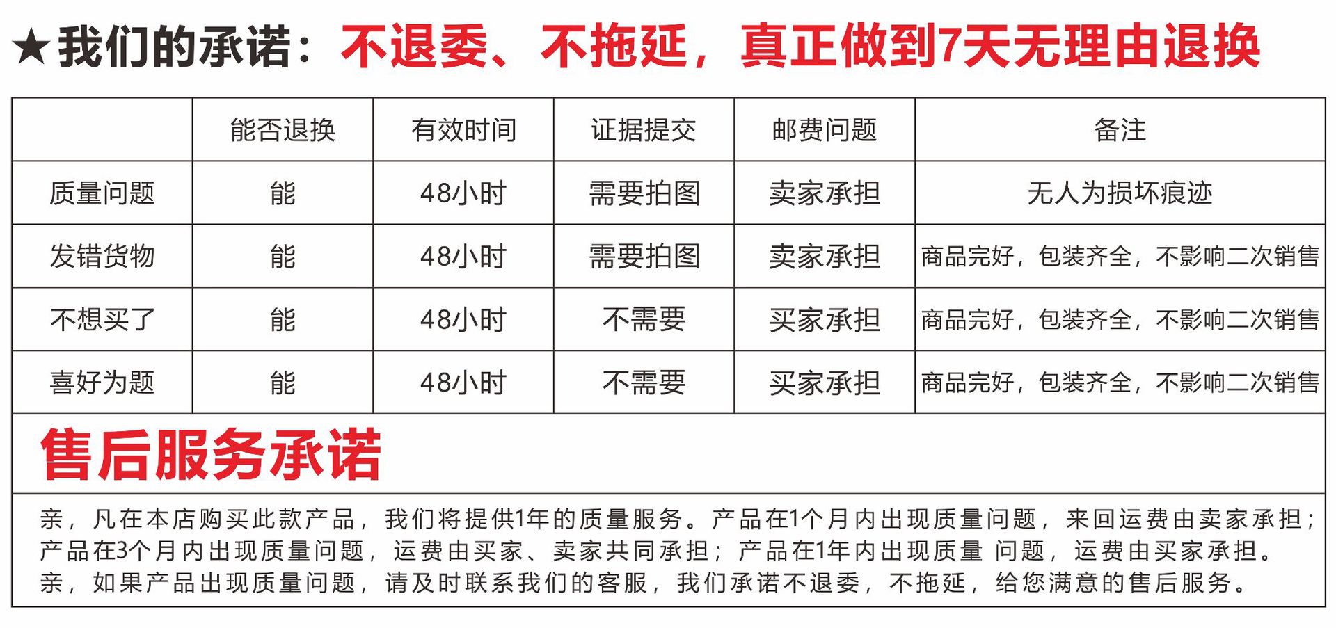 如產(chǎn)品有質(zhì)量問題,按照淘寶規(guī)則,我們無條件承擔(dān)退換貨運費,(我司一律拒收順豐等快遞到付件)