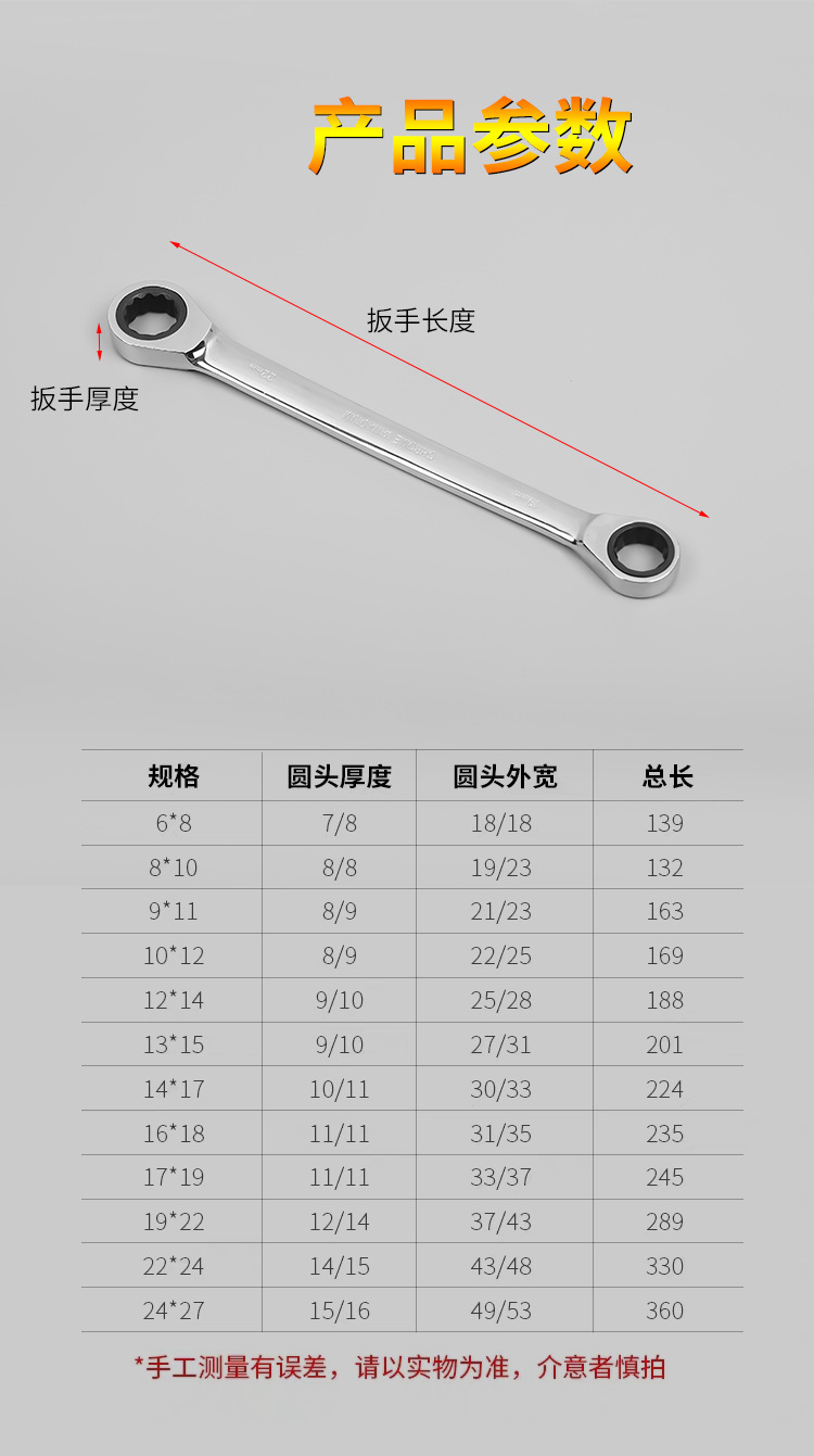 雙頭棘輪 6*8,雙頭棘輪 8*10,雙頭棘輪 9*11,雙頭棘輪 10*12,雙頭棘輪 12*14,雙頭棘輪 13*15,雙頭棘輪 14*17,雙頭棘輪 16*18,雙頭棘輪 17*19,雙頭棘輪 19*22,雙頭棘輪 22*24,雙頭棘輪 24*27