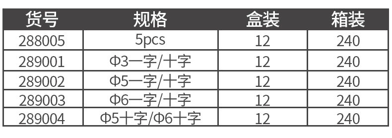 5pcs(后面4個規(guī)格刀頭加上手柄),刀頭直徑一字3mm,十字3mm(3mm刀頭+手柄),刀頭直徑一字5mm,十字5mm(5mm刀頭+手柄),刀頭直徑一字6mm,十字6mm(6mm刀頭+手柄),刀頭直徑十字5mm,十字6mm(刀頭+手柄)