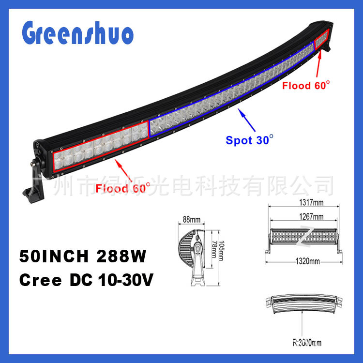 .LED功率:288W Cree長條燈 jeep改裝燈