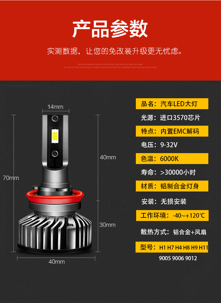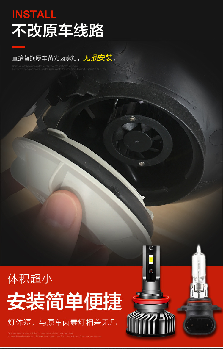 2.燈體短:LED燈體長度僅7cm,適合市面上99%的車型無損安裝,無需改防塵罩。
