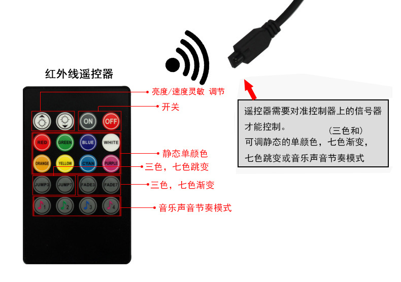 產(chǎn)品名稱:拖四聲控七彩氣氛燈(RGB氛圍燈)