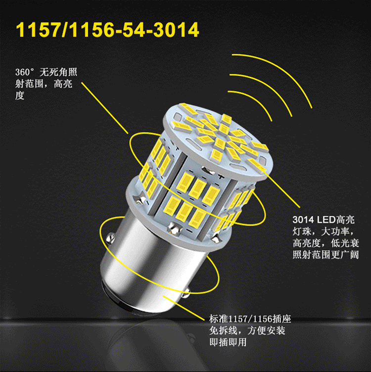 >產(chǎn)品供應(yīng)> HVAC汽車(chē)>車(chē)身件>汽車(chē)燈具>led剎車(chē)燈1156 1157 t20 3014 54smd高亮 帶恒流轉(zhuǎn)向燈 倒車(chē)燈 霧燈 汽車(chē)/摩托車(chē)氛圍燈 剎車(chē)燈/轉(zhuǎn)向燈 T15倒車(chē)燈系列 T10系列 雙尖系列 摩托車(chē)大燈 汽車(chē)大燈 鷹眼燈系列