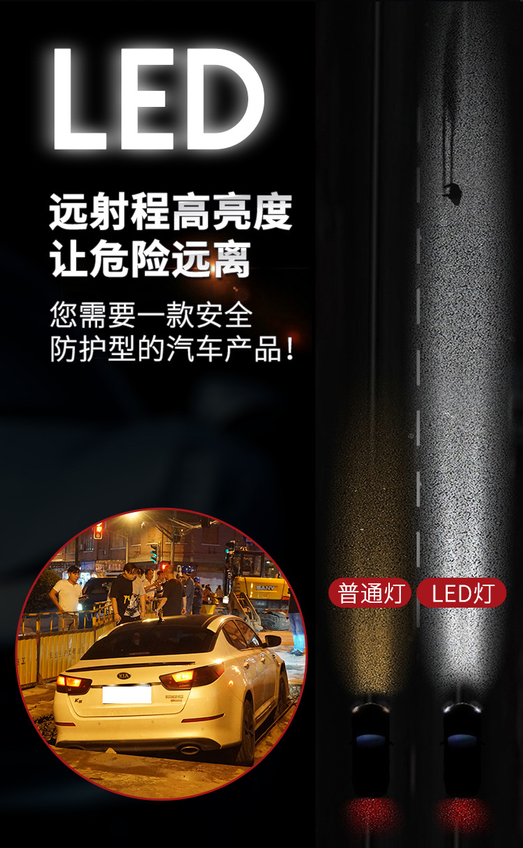 3、采用LED光源,節(jié)能耗電小,能更好的保護汽車電路;