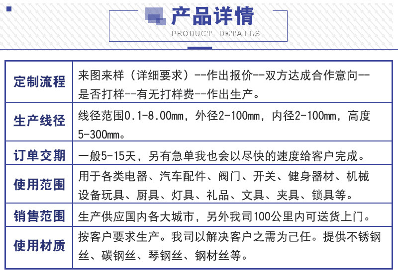熱銷推薦 醫(yī)療彈簧 電器彈簧 店長推薦 壓縮彈簧 拉神彈簧 扭轉彈簧 異形彈簧 渦卷彈簧 汽車彈簧