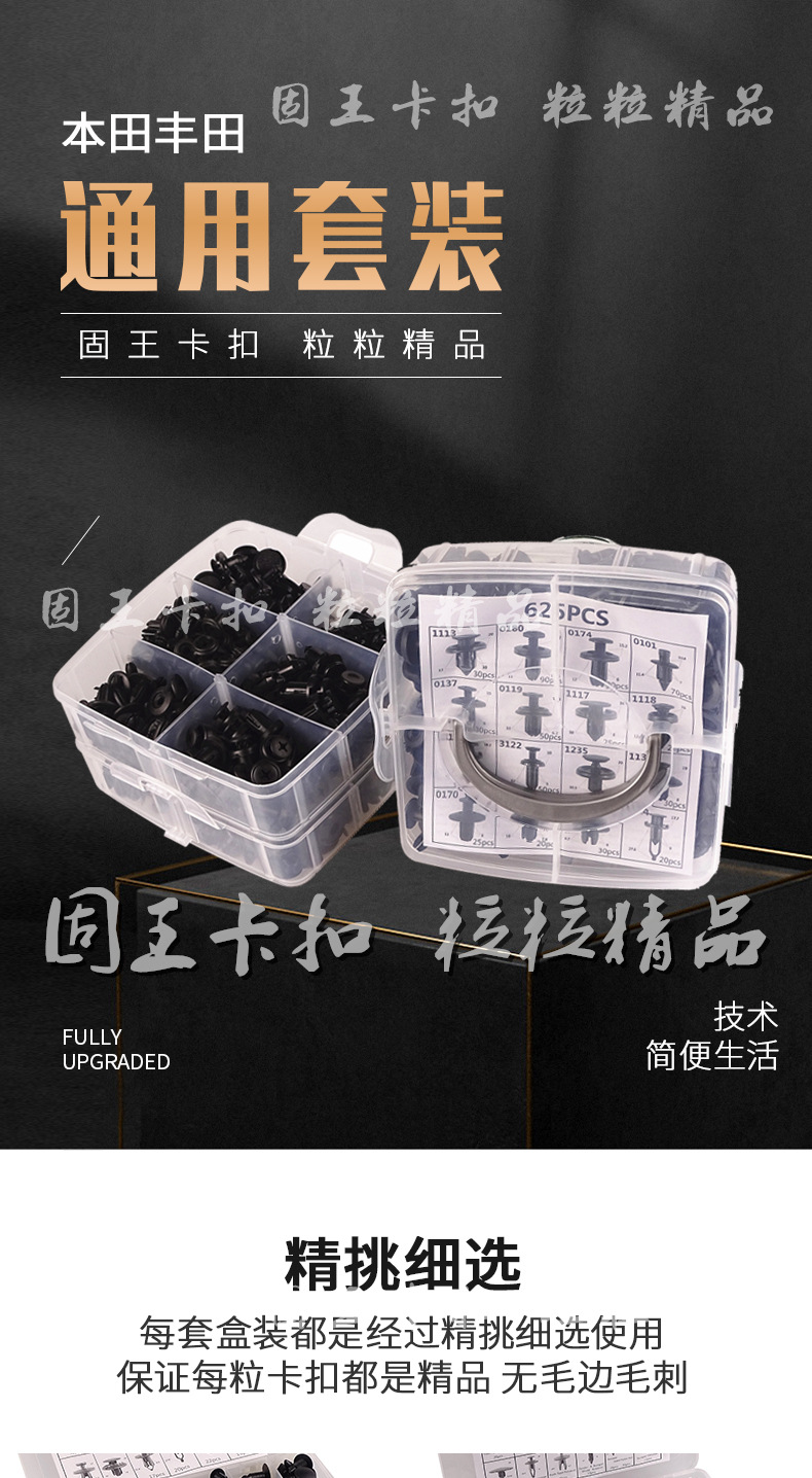 您所在的位置:全球零部件網(wǎng)>產(chǎn)品供應(yīng)> HVAC汽車>通用件與標(biāo)準(zhǔn)件>330pcs盒裝卡扣 適用于本田豐田福特汽車身保險(xiǎn)杠鉚釘卡子