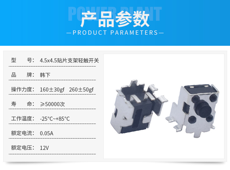 >產(chǎn)品供應(yīng)> HVAC汽車>汽車電子電器>開關(guān)>廠家供應(yīng)4.5x4.5貼片式支架輕觸開關(guān)高壽命側(cè)按按鍵開關(guān)有現(xiàn)貨 輕觸開關(guān) DC電源插座 耳機(jī)插座 USB連接器 撥動(dòng)開關(guān) 其他產(chǎn)品