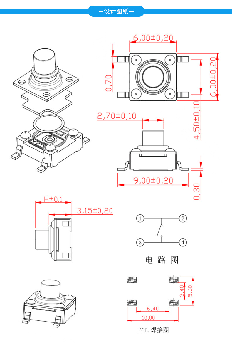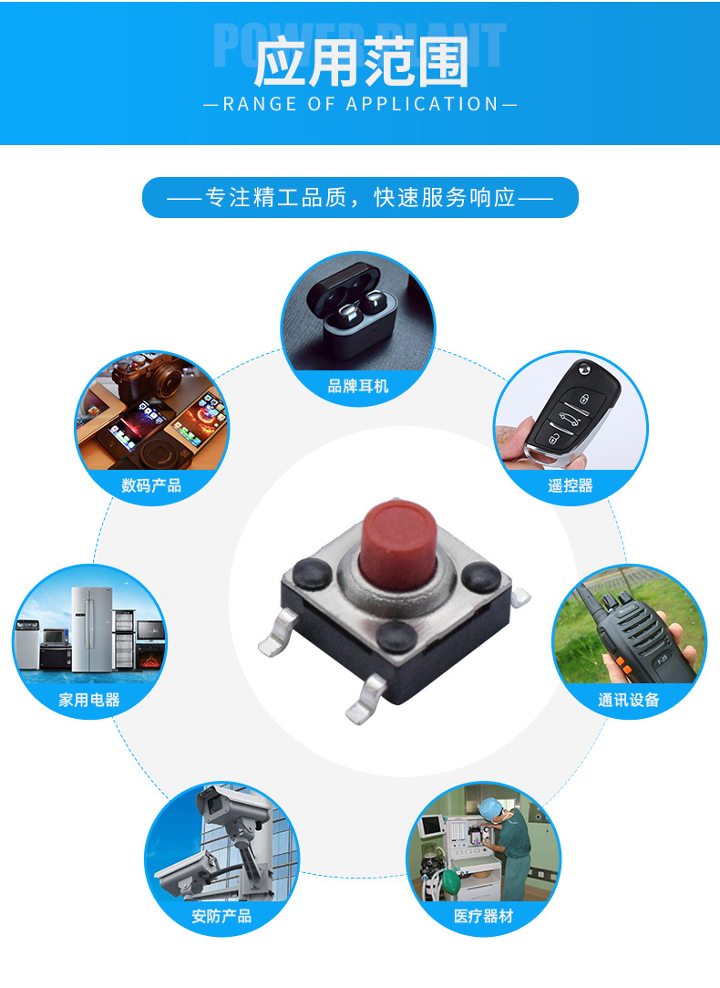 >產(chǎn)品供應(yīng)> HVAC汽車>汽車電子電器>開關(guān)>廠家供應(yīng)6x6拉伸蓋四腳貼片式輕觸開關(guān)紅頭高壽命7級(jí)防水按鍵開關(guān) 輕觸開關(guān) DC電源插座 耳機(jī)插座 USB連接器 撥動(dòng)開關(guān) 其他產(chǎn)品