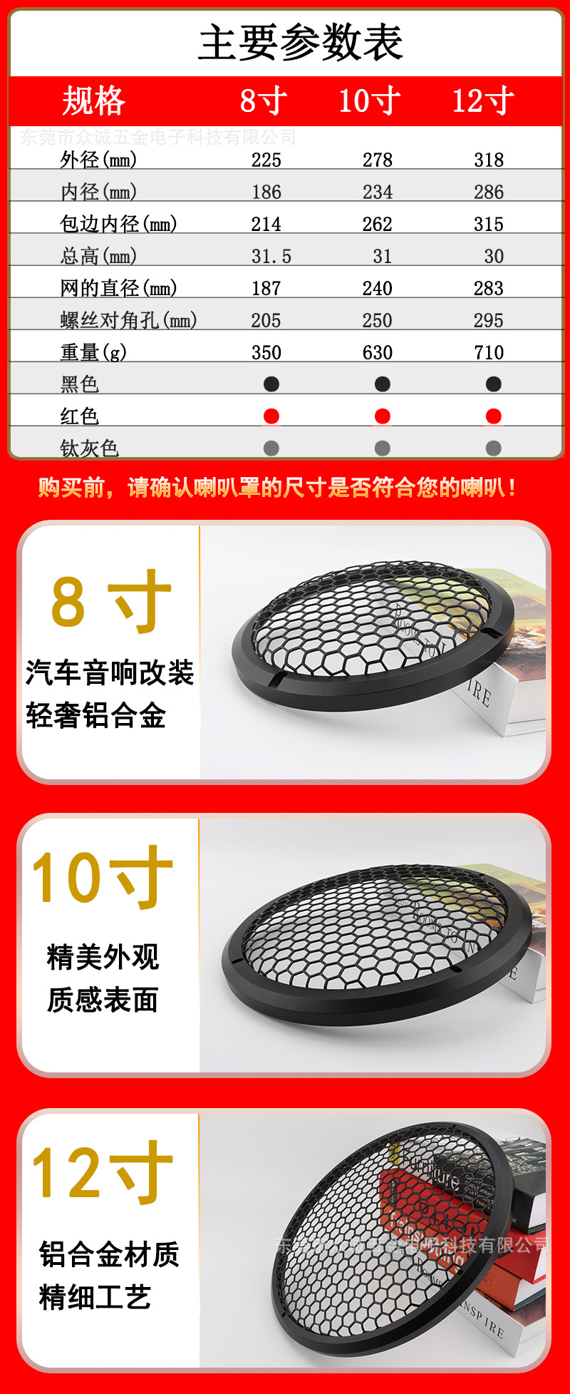 立即發(fā)布求購意向本網(wǎng)頁所展示的有關(guān)【8寸 10寸 12 寸 汽車音響改裝 家庭音箱喇叭保護(hù)網(wǎng)罩 鋁合金材質(zhì)_喇叭及配件_東莞市眾誠五金電子科技有限公司】的信息/圖片/參數(shù)等由全球零部件網(wǎng)的會(huì)員【東莞市眾誠五金電子科技有限公司】提供,由全球零部件網(wǎng)會(huì)員【東莞市眾誠五金電子科技有限公司】自行對(duì)信息/圖片/參數(shù)等的真實(shí)性、準(zhǔn)確性和合法性負(fù)責(zé),本平臺(tái)(本網(wǎng)站)僅提供展示服務(wù),請(qǐng)謹(jǐn)慎交易,因交易而產(chǎn)生的法律關(guān)系及法律糾紛由您自行協(xié)商解決,本平臺(tái)(本網(wǎng)站)對(duì)此不承擔(dān)任何責(zé)任。您在本網(wǎng)頁可以瀏覽【8寸 10寸 12 寸 汽車音響改裝 家庭音箱喇叭保護(hù)網(wǎng)罩 鋁合金材質(zhì)_喇叭及配件_東莞市眾誠五金電子科技有限公司】有關(guān)的信息/圖片/價(jià)格等及提供【8寸 10寸 12 寸 汽車音響改裝 家庭音箱喇叭保護(hù)網(wǎng)罩 鋁合金材質(zhì)_喇叭及配件_東莞市眾誠五金電子科技有限公司】的商家公司簡介、聯(lián)系方式等信息。