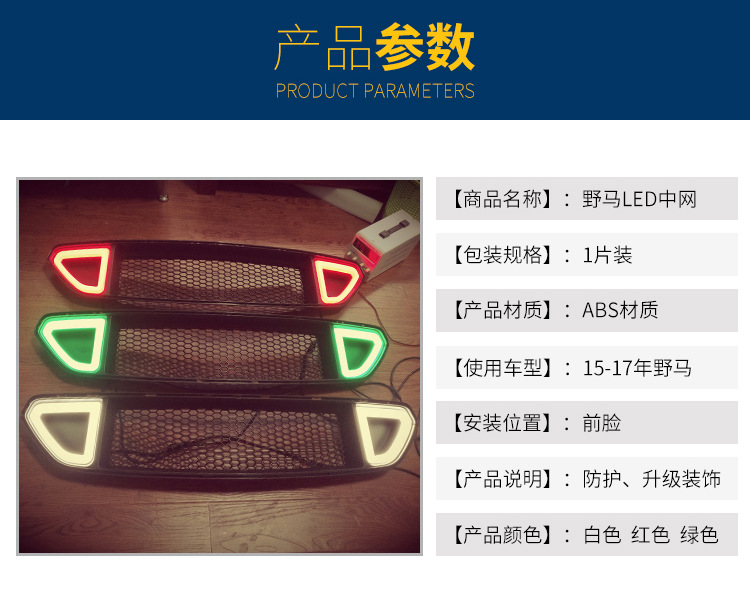 立即發(fā)布求購意向本網(wǎng)頁所展示的有關(guān)【mustang野馬LED中網(wǎng)(白光)(紅光)(綠光) 野馬改裝帶燈中網(wǎng)_汽車改裝_江蘇小棟汽車科技有限公司】的信息/圖片/參數(shù)等由全球零部件網(wǎng)的會員【江蘇小棟汽車科技有限公司】提供,由全球零部件網(wǎng)會員【江蘇小棟汽車科技有限公司】自行對信息/圖片/參數(shù)等的真實性、準(zhǔn)確性和合法性負(fù)責(zé),本平臺(本網(wǎng)站)僅提供展示服務(wù),請謹(jǐn)慎交易,因交易而產(chǎn)生的法律關(guān)系及法律糾紛由您自行協(xié)商解決,本平臺(本網(wǎng)站)對此不承擔(dān)任何責(zé)任。您在本網(wǎng)頁可以瀏覽【mustang野馬LED中網(wǎng)(白光)(紅光)(綠光) 野馬改裝帶燈中網(wǎng)_汽車改裝_江蘇小棟汽車科技有限公司】有關(guān)的信息/圖片/價格等及提供【mustang野馬LED中網(wǎng)(白光)(紅光)(綠光) 野馬改裝帶燈中網(wǎng)_汽車改裝_江蘇小棟汽車科技有限公司】的商家公司簡介、聯(lián)系方式等信息。