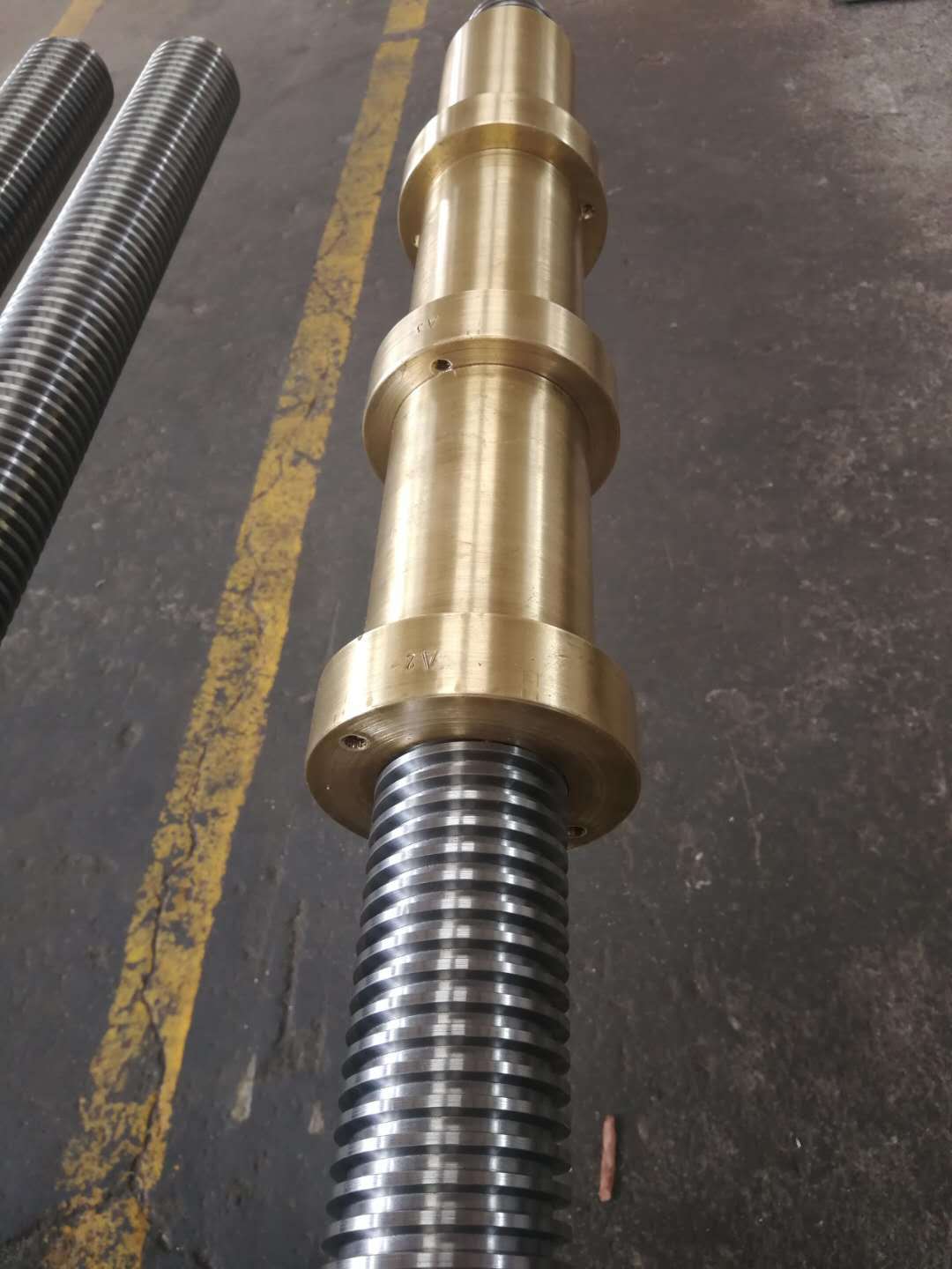 Tr40×06L1000-8 其中,Tr為梯形絲杠;40為公稱(chēng)直徑;06為螺距;L為螺紋旋向,左旋為“L”,右旋為“R”;1000為絲杠長(zhǎng)度,單位是mm;8為精度等級(jí)。公司擁有1M、3M、3M、6M、10M、13m/等各種規(guī)格的精密絲杠專(zhuān)用車(chē)床,產(chǎn)品精加工在恒溫條件下進(jìn)行,能生產(chǎn)標(biāo)準(zhǔn)、特殊齒形等類(lèi)型絲杠,完全具備專(zhuān)業(yè)生產(chǎn)水平.歡迎來(lái)圖來(lái)樣加工。
