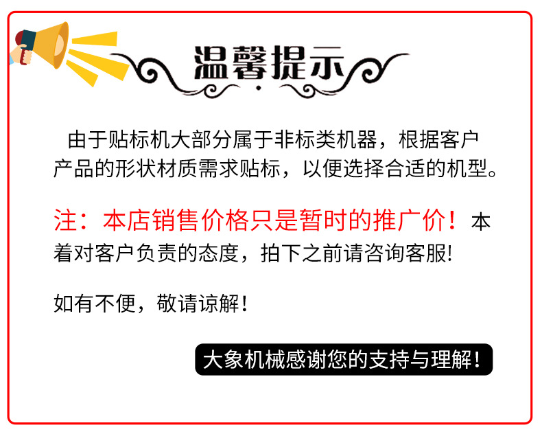 立即發(fā)布求購意向本網(wǎng)頁所展示的有關(guān)【全自動(dòng)平面貼標(biāo)機(jī) 打碼機(jī)紙箱盒子標(biāo)簽紙片卡片說明書 分頁貼標(biāo)機(jī)_貼體包裝機(jī)_東莞市大象機(jī)械設(shè)備有限公司】的信息/圖片/參數(shù)等由全球零部件網(wǎng)的會(huì)員【東莞市大象機(jī)械設(shè)備有限公司】提供,由全球零部件網(wǎng)會(huì)員【東莞市大象機(jī)械設(shè)備有限公司】自行對(duì)信息/圖片/參數(shù)等的真實(shí)性、準(zhǔn)確性和合法性負(fù)責(zé),本平臺(tái)(本網(wǎng)站)僅提供展示服務(wù),請(qǐng)謹(jǐn)慎交易,因交易而產(chǎn)生的法律關(guān)系及法律糾紛由您自行協(xié)商解決,本平臺(tái)(本網(wǎng)站)對(duì)此不承擔(dān)任何責(zé)任。您在本網(wǎng)頁可以瀏覽【全自動(dòng)平面貼標(biāo)機(jī) 打碼機(jī)紙箱盒子標(biāo)簽紙片卡片說明書 分頁貼標(biāo)機(jī)_貼體包裝機(jī)_東莞市大象機(jī)械設(shè)備有限公司】有關(guān)的信息/圖片/價(jià)格等及提供【全自動(dòng)平面貼標(biāo)機(jī) 打碼機(jī)紙箱盒子標(biāo)簽紙片卡片說明書 分頁貼標(biāo)機(jī)_貼體包裝機(jī)_東莞市大象機(jī)械設(shè)備有限公司】的商家公司簡介、聯(lián)系方式等信息。