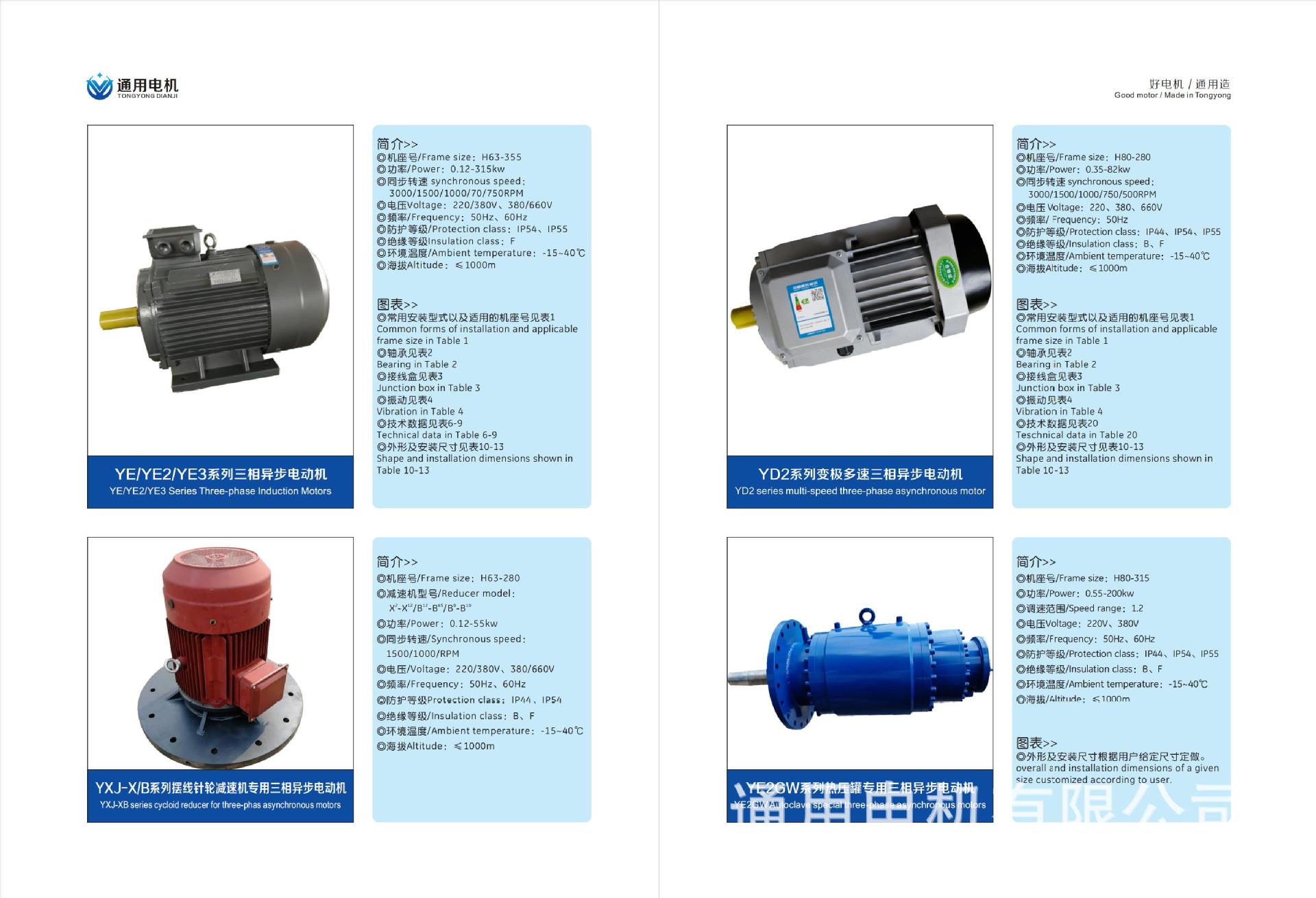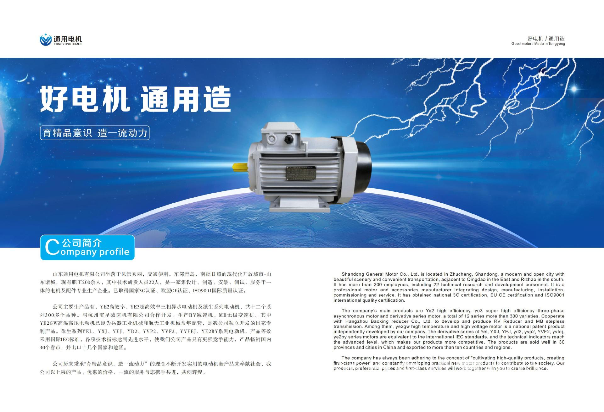 山東通用電機(jī)有限公司坐落于風(fēng)景秀麗,交通便利,東鄰青島,南眥日照的現(xiàn)代化開放城市--山東諸城,現(xiàn)有職工200余人,其中技術(shù)研發(fā)人員22人,是一家集設(shè)計(jì)、制造、安裝、調(diào)試、服務(wù)于一體的電機(jī)及配件生產(chǎn)企業(yè)。已取得國家3C認(rèn)證、歐盟CE認(rèn)證、ISO 9001國際質(zhì)量認(rèn)證。 公司主要生產(chǎn)品有,YE3高效率、YE4高效率三相異步電動機(jī)及派生系列電動機(jī),共十二個(gè)系列300多個(gè)品種。與杭州寶星減速機(jī)有限公司合作開發(fā)、生產(chǎn)RV減速機(jī)、MB無極變速機(jī)。其中YE2GW高溫高壓電動機(jī)已經(jīng)為兵器工業(yè)機(jī)械和航天工業(yè)機(jī)械常年配套,是我公司獨(dú)立開發(fā)的產(chǎn)品。派生系列YEL、Y XJ、YE J、YD 3、Y VP 3、Y VF 3、Y VF EJ、YE3BY系列電動機(jī), 產(chǎn)品等效采用國際IEC標(biāo)準(zhǔn),使我們公司產(chǎn)品具有更強(qiáng)競爭能力。